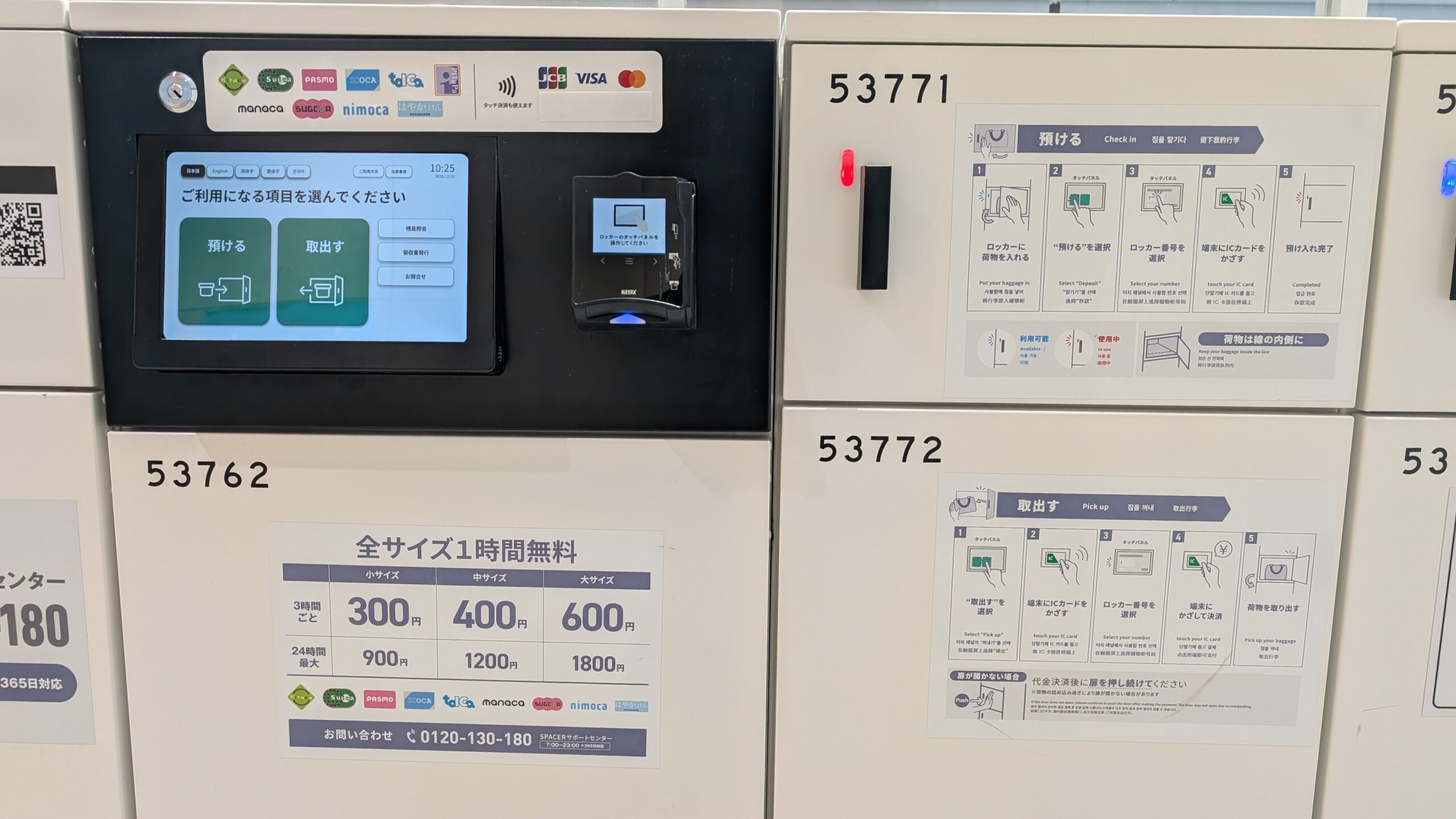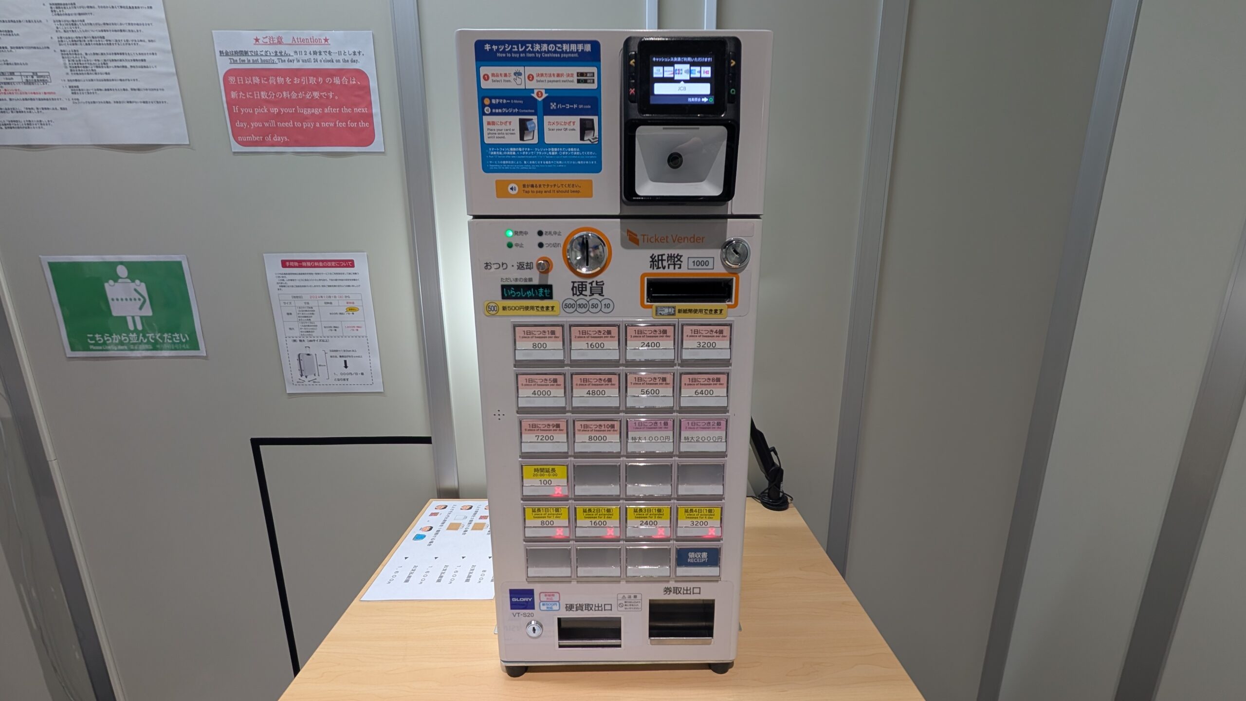 キャッシュレス決済対応の券売機で希望の時間・個数分の支払うことで預けることができます。