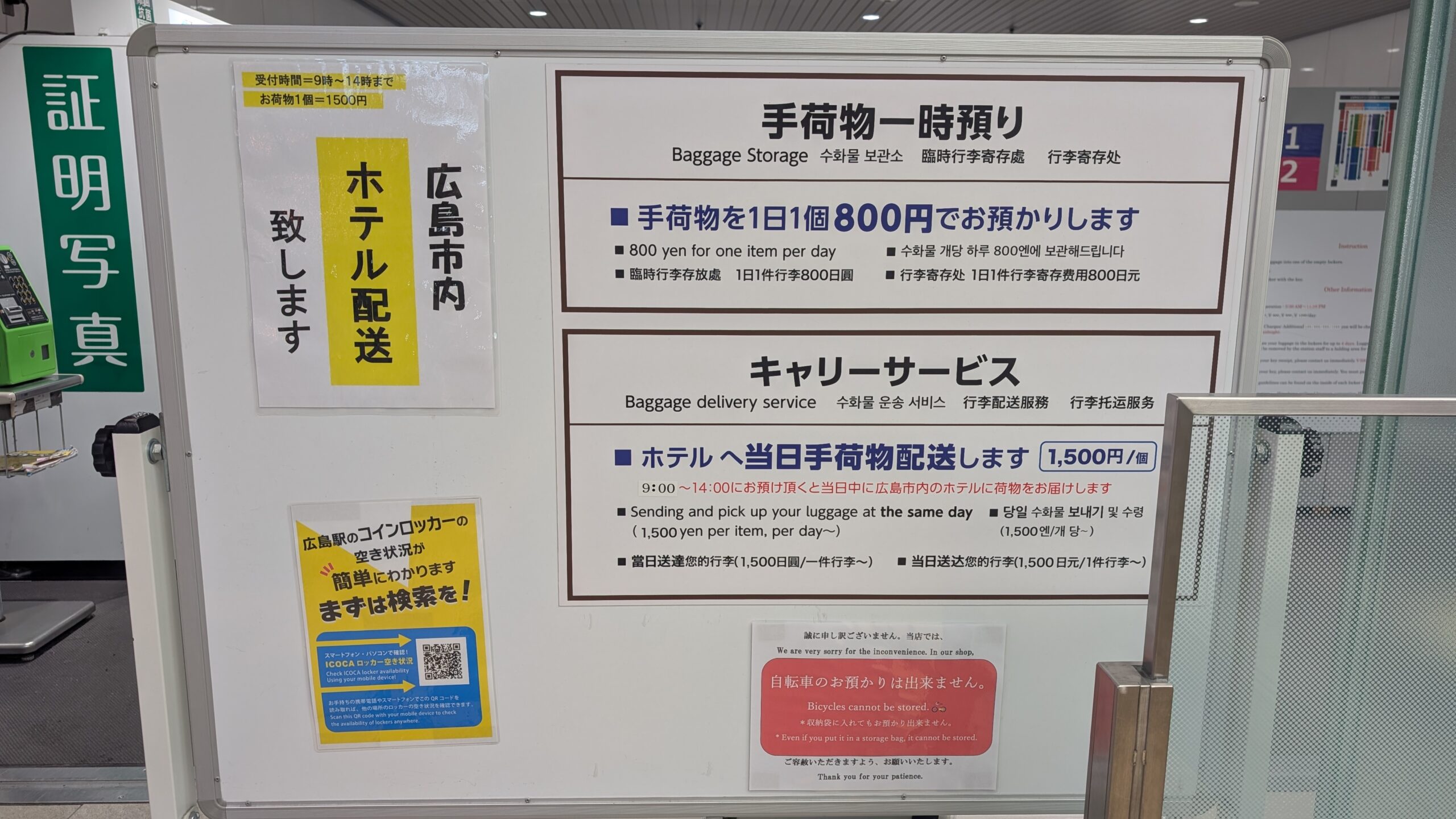 広島駅南口1階にある預かり所。