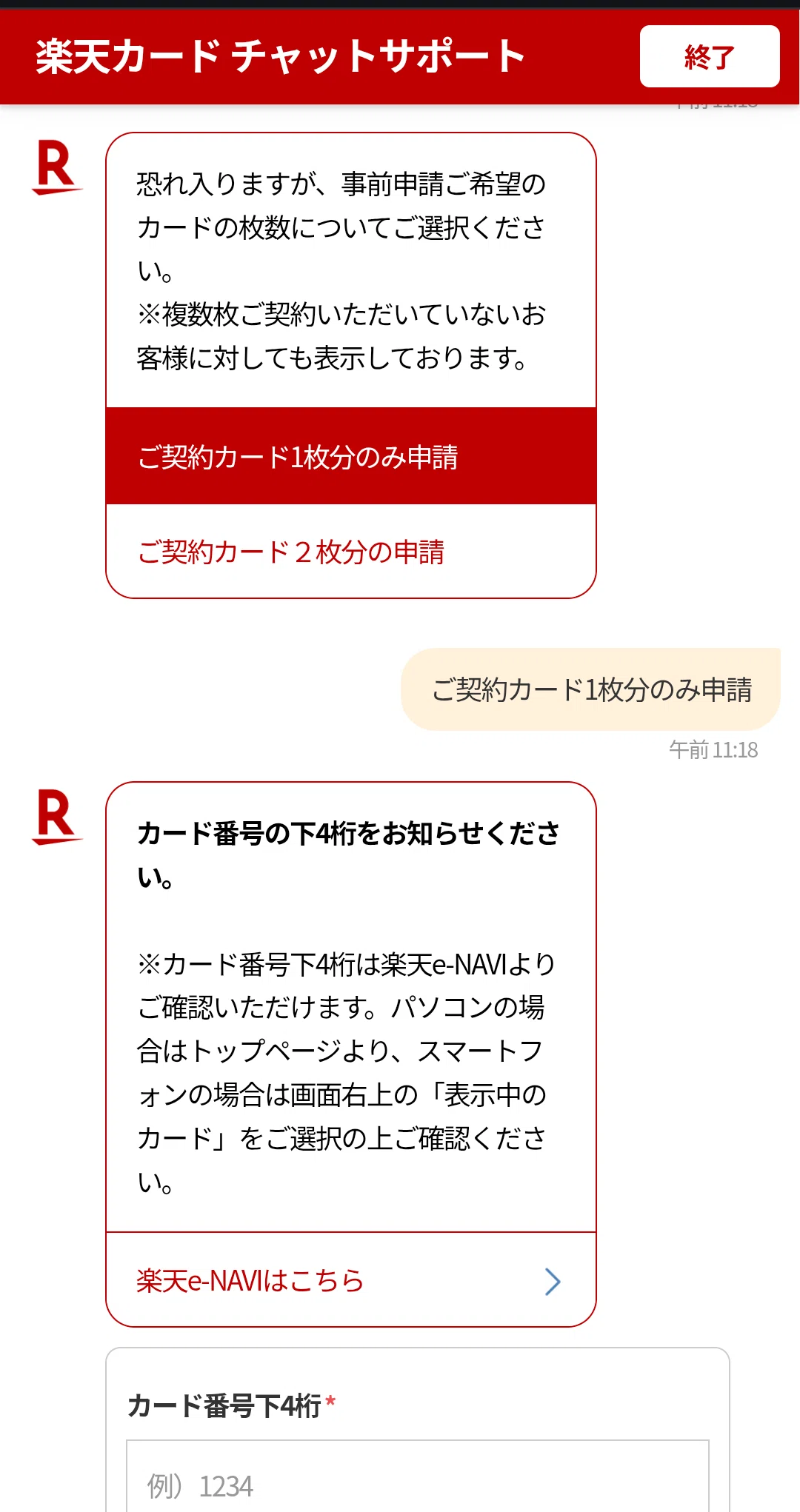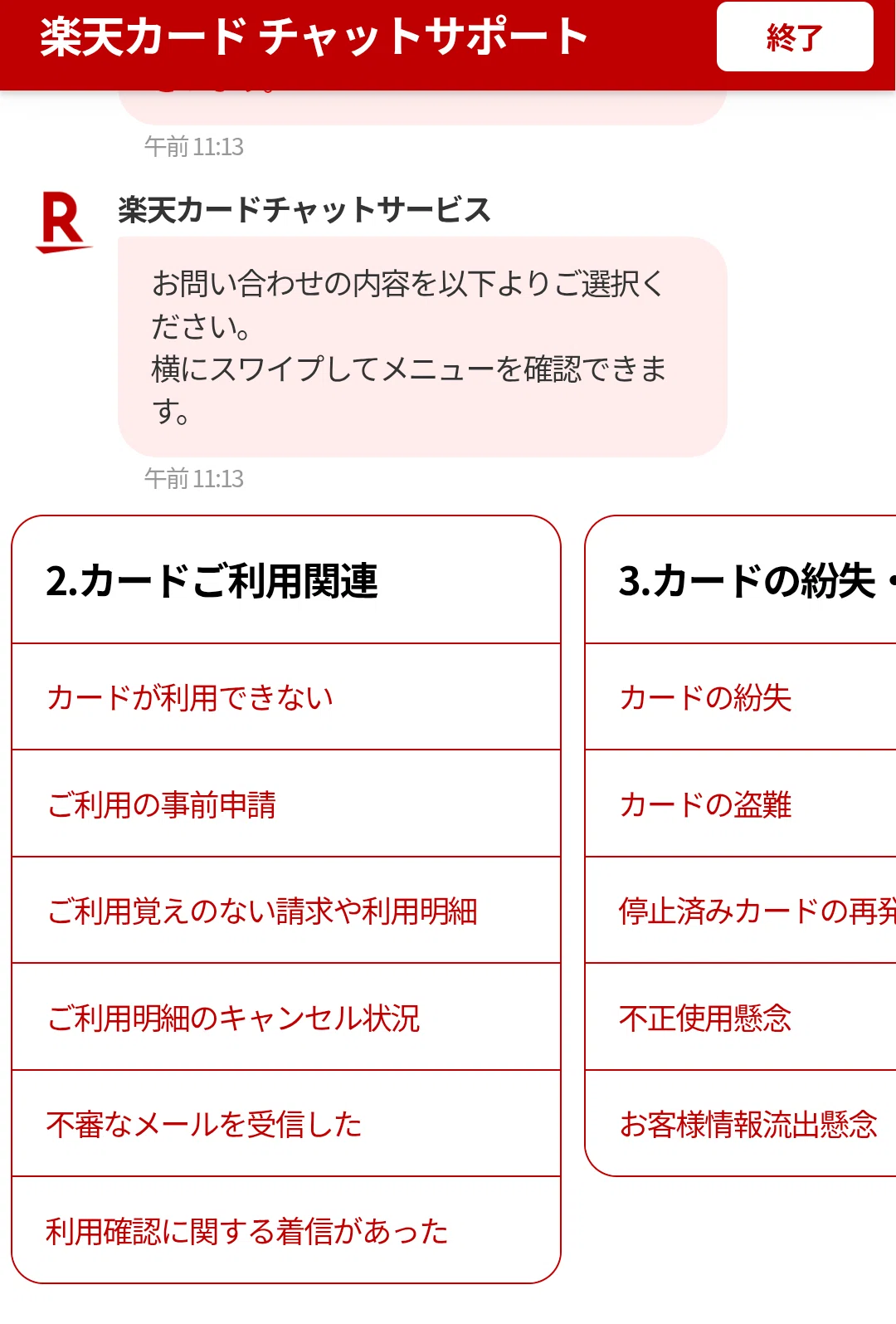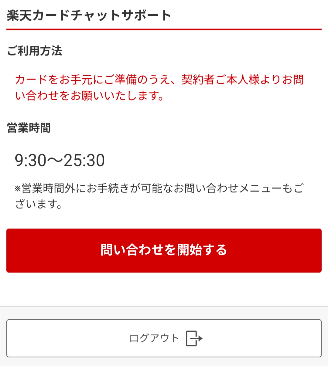 楽天カードでは電話かチャットお好みの方法で申請することができます。