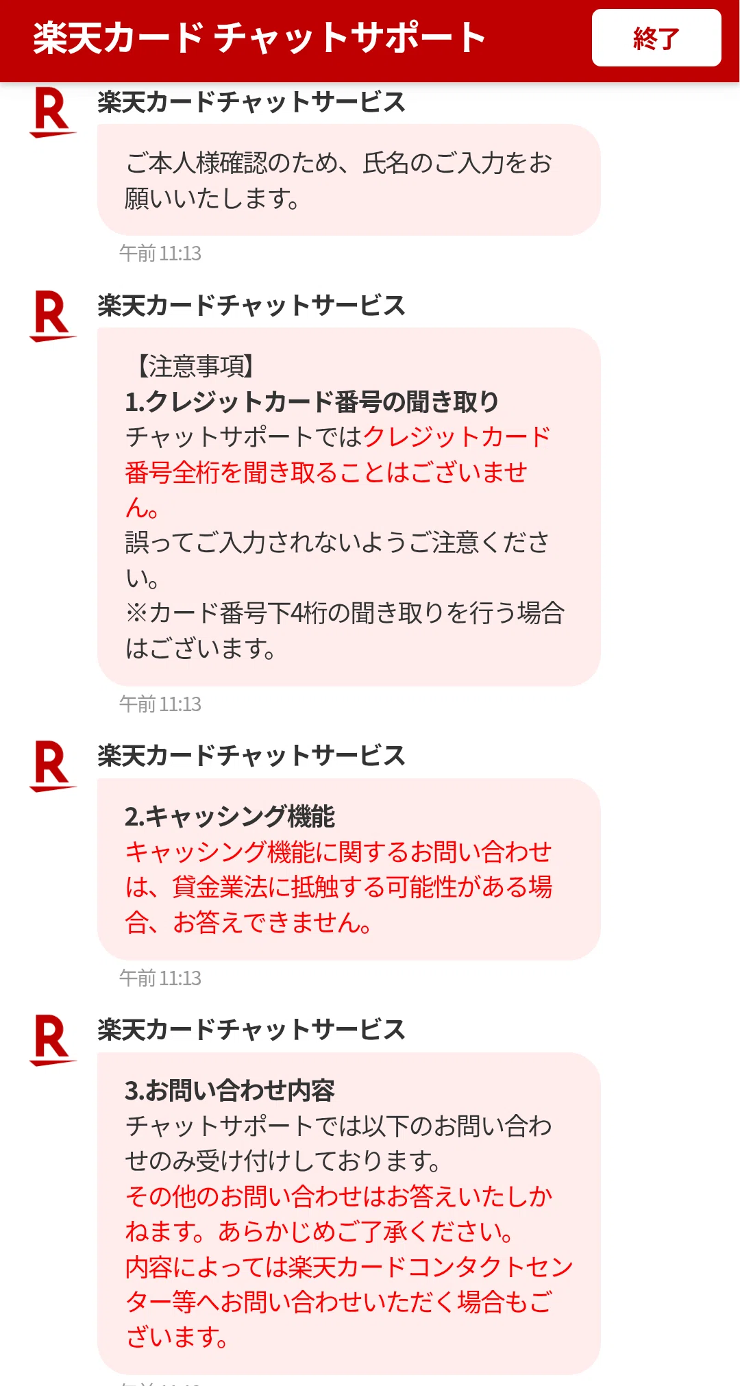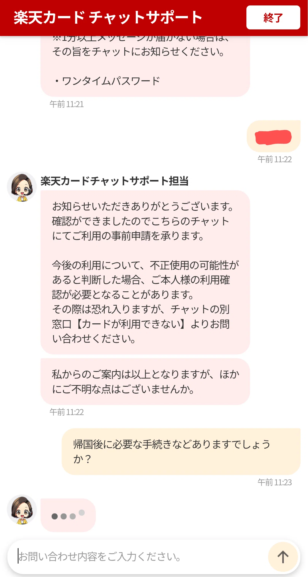 ここからはサポート担当者とのチャットでのやりとりとなります。